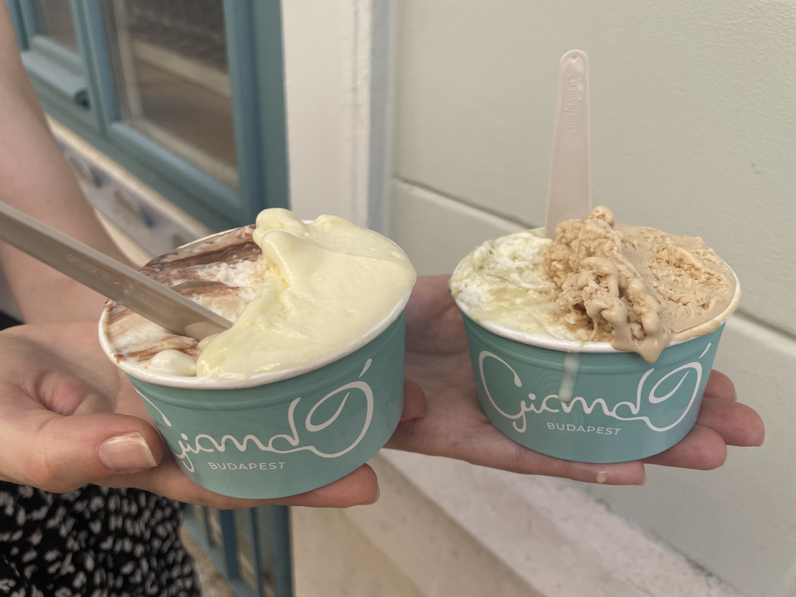 A Ferenciek tere szomszédságában lévő fagylaltozó tekert egyet a hagyományos tölcséren, náluk a fagyit könnyű és puha, saját készítésű vegán kürtőskalácsban is kérhetjük. A langyos tölcsért ráadásul, ha szeretnénk, kikenik nekünk Nutellával, pisztáciával vagy mogyorókrémmel, amikhez még Damniczki Balázs, az ismert székesfehérvári cukrász fagyijait is megkóstolhatjuk.